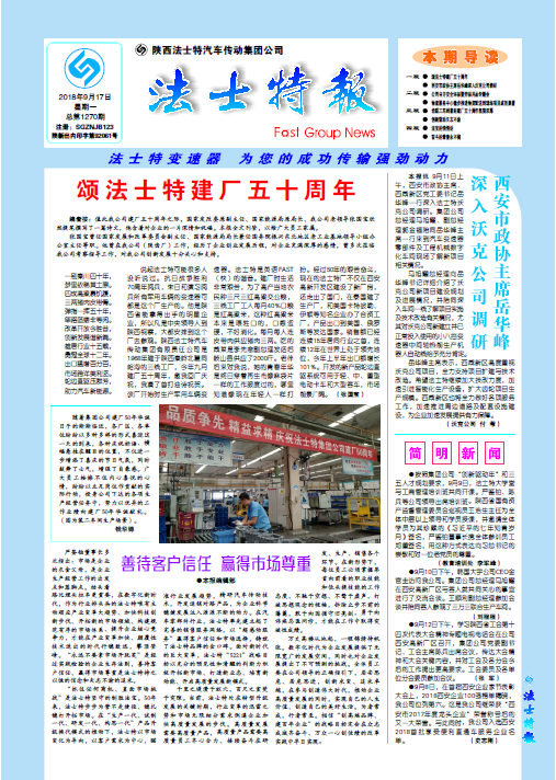 點擊量:53979月11日上午,西安市政協主席、西咸新區黨工委書記岳華峰一行深入法士特沃克公司調研。集團公司總經理馬旭耀、副總經理郭金福陪同岳華峰主席一行來到汽車變速器零部件及工程